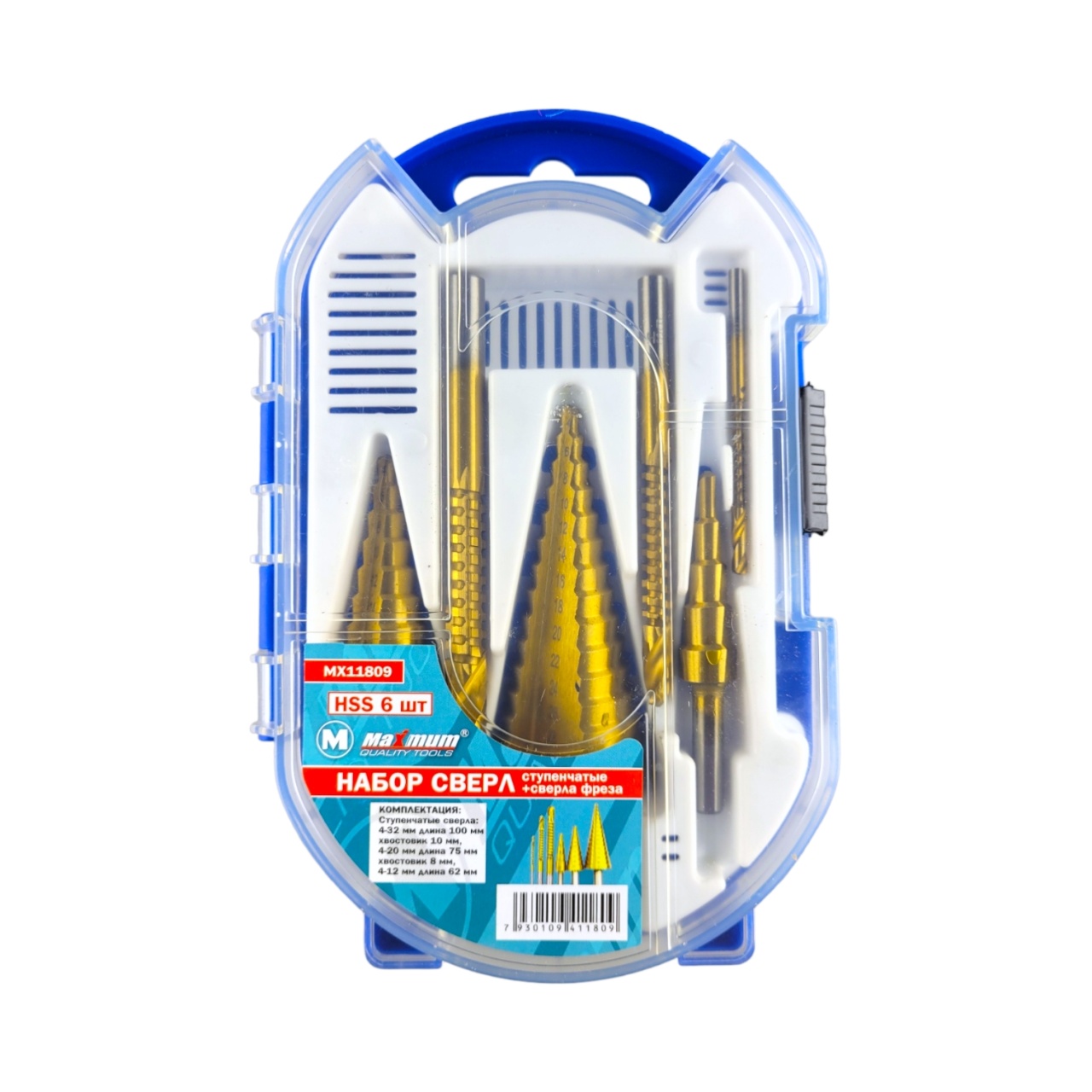 Комплект универсальных HSS сверл «Maximum Quality Tools» включает в себя три ступенчатых сверла и три сверла-фрезы. Ступенчатые сверла из быстрорежущей стали предназначены для различных материалов, включая сталь, латунь, дерево, пластик и т. д.